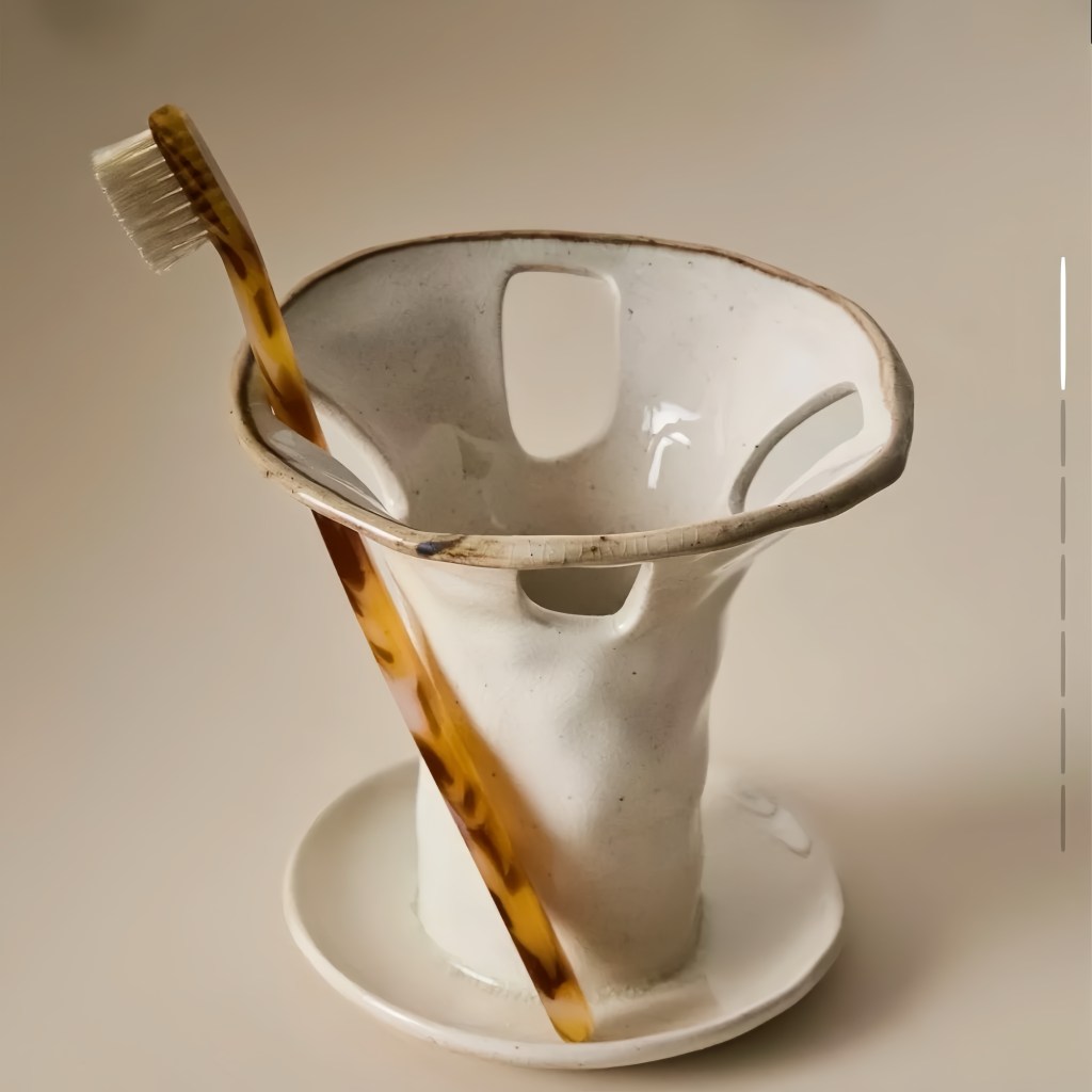Bold and artistic ceramic toothbrush cup, custom-designed for a leading Spanish brand. A striking statement in bathroom design.