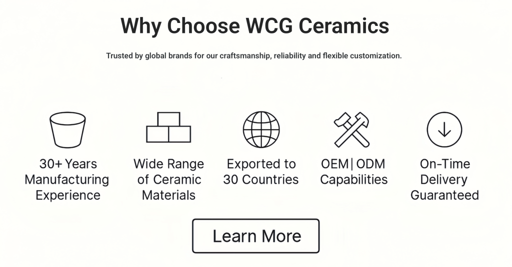 From custom Planters to elegant Dining ware, WCG Ceramics delivers reliable,