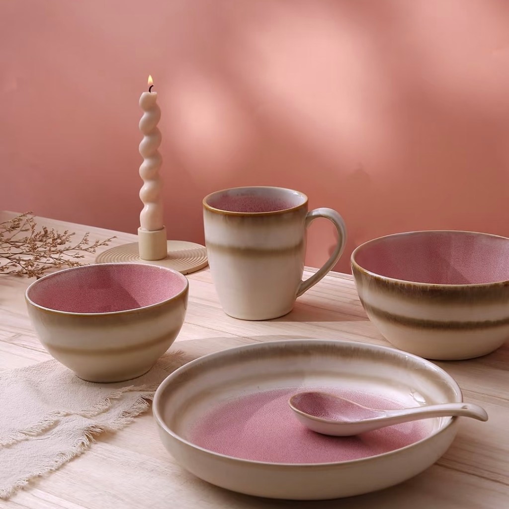 Material: Stoneware | Finish: Double glaze stoneware with blush pink interior| MOQ: 1000 pcs