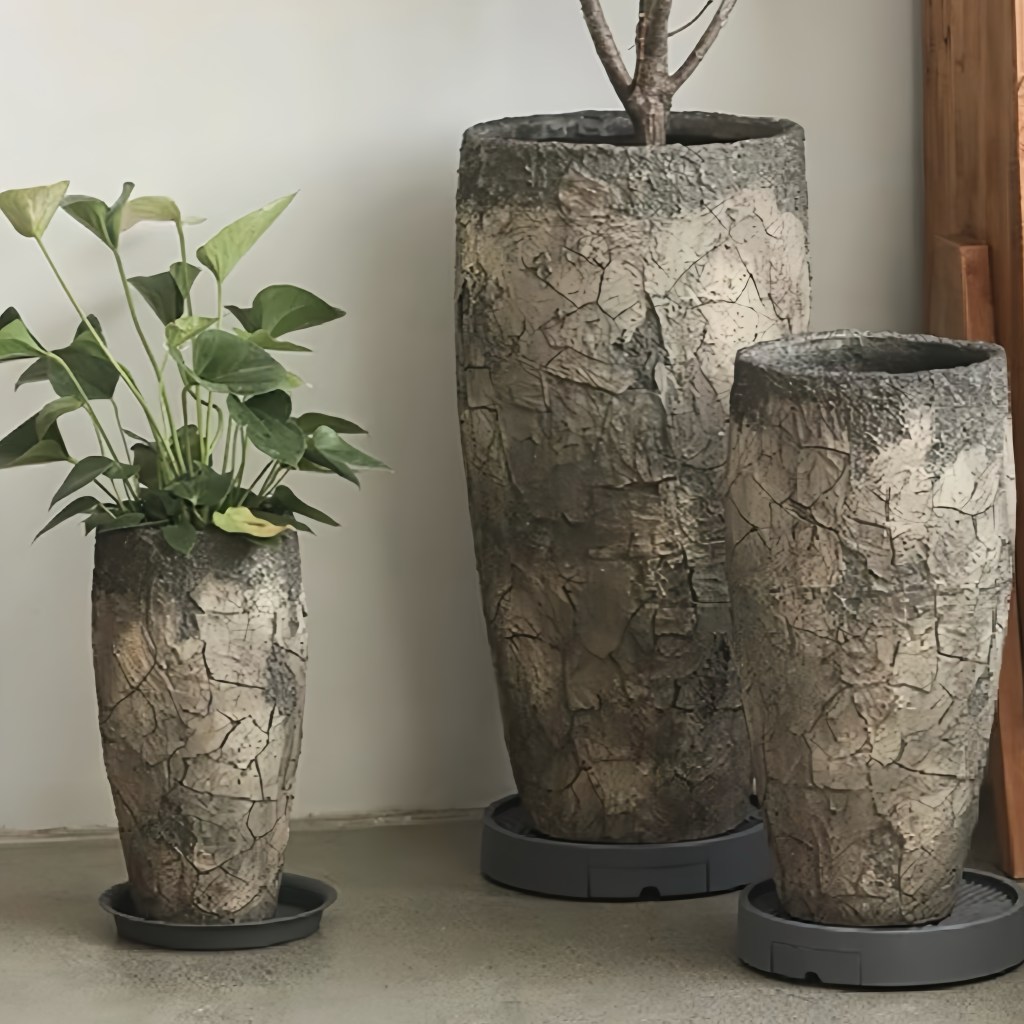 Mimicking the look of weathered rock, this collection offers a rugged yet contemporary aesthetic.